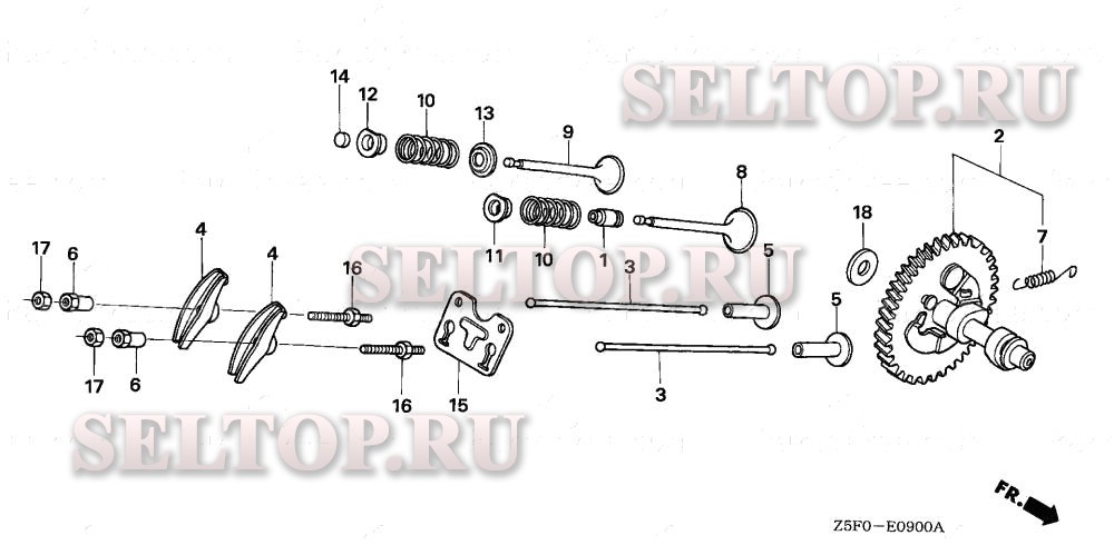 Распредвал для Honda GX240U1 QHQ4, взрыв-схема: