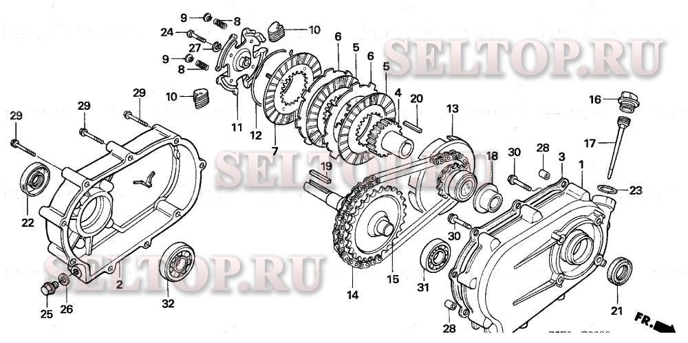 Редуктор (1) для Honda GX240U1 RTB2, взрыв-схема: