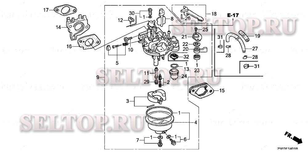 Карбюратор (2) для Honda GX240U1 VA2, взрыв-схема: