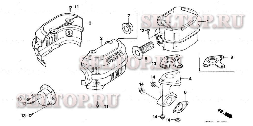 Глушитель (1) для Honda GX240U1 WKK2, взрыв-схема: