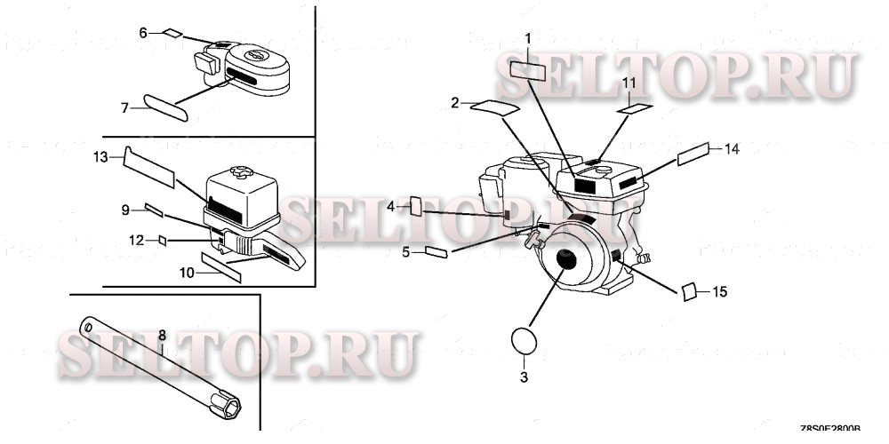Этикетка, инструмент для Honda GX240UT1 QAR2, взрыв-схема: