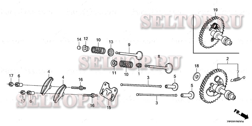 Распредвал для Honda GX240UT1 QXC9, взрыв-схема: