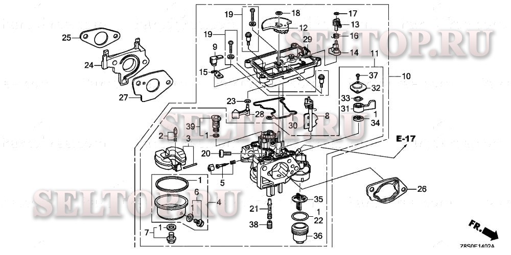 Карбюратор (3) для Honda GX240UT2 QZA2, взрыв-схема: