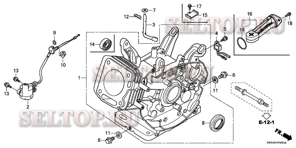 Блок цилиндров для Honda GX240UT2 SMXC, взрыв-схема:
