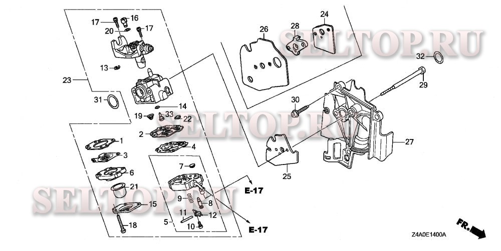 Карбюратор для Honda GX25N W3, взрыв-схема: