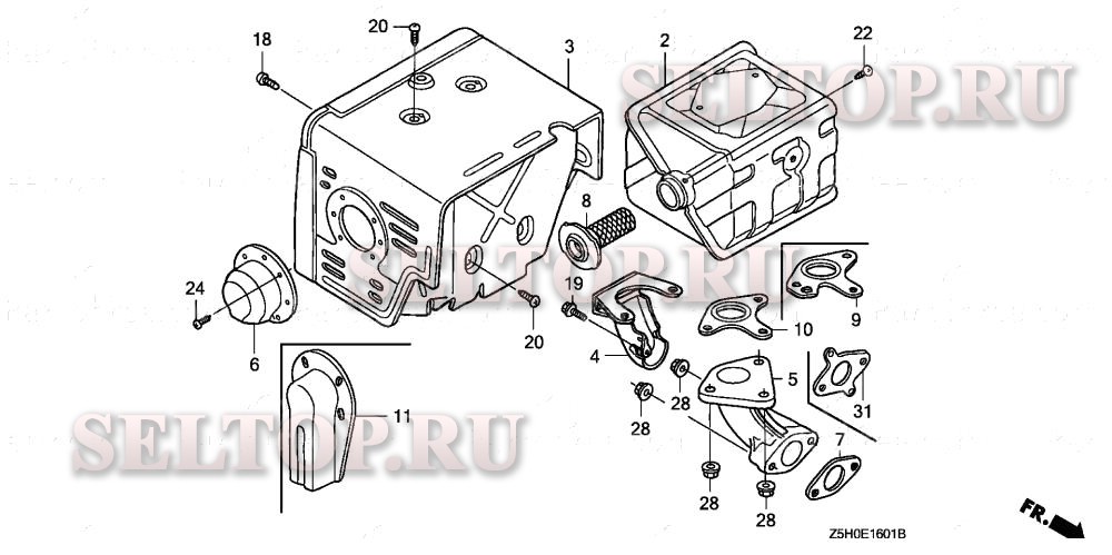 Глушитель (2) для Honda GX270R VNT2, взрыв-схема: