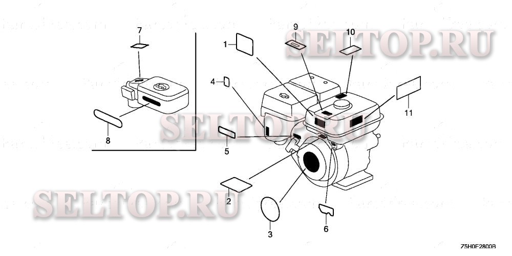 Этикетка для Honda GX270U QAE6, взрыв-схема: