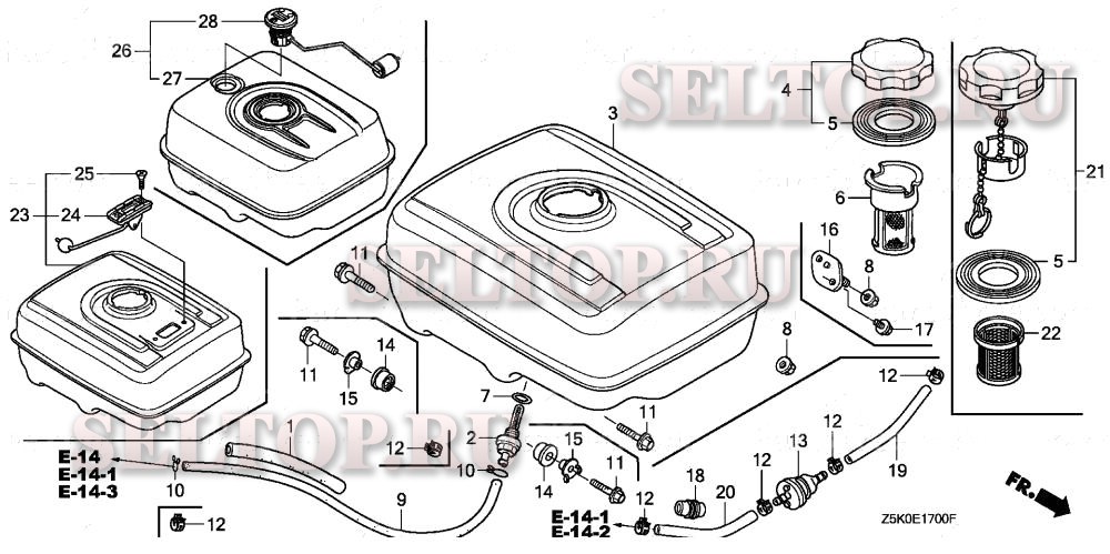 Топливный бак для Honda GX270UT VKX4, взрыв-схема: