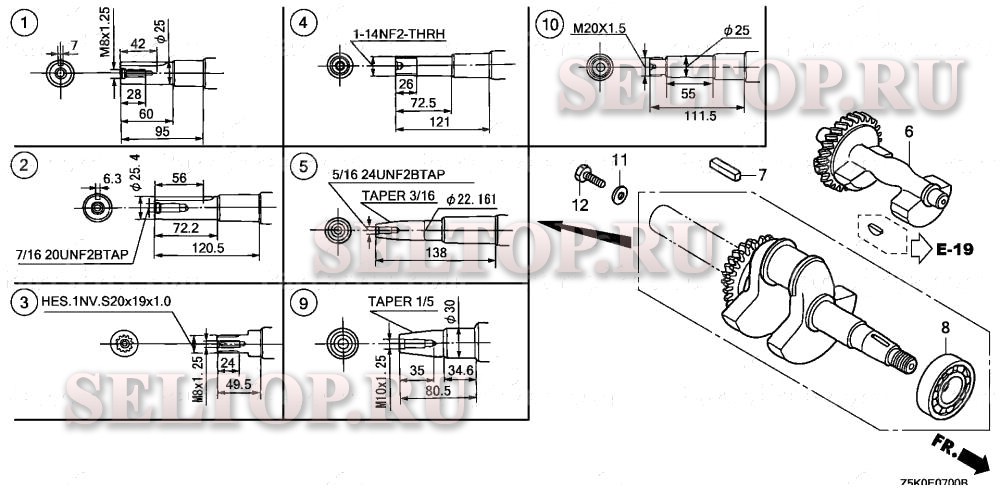 Коленвал для Honda GX270UT VXB9, взрыв-схема: