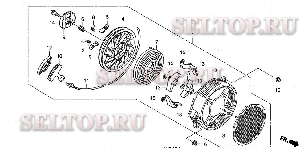 Ручной стартер (2) для Honda GX270UT2 QZA2