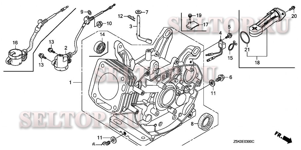 Блок цилиндров для Honda GX270UT2 SMXC, взрыв-схема: