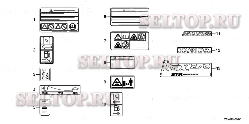 Прочие запчасти (этикетка) для Honda GX270UT2 VME4