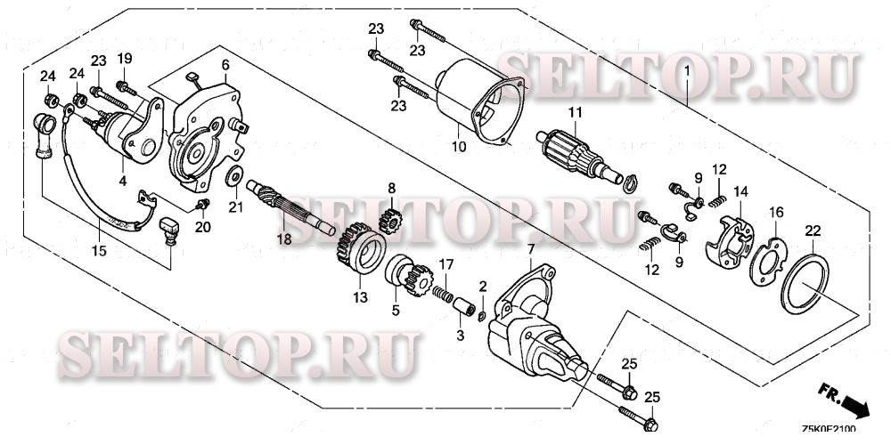 Стартер (1) для Honda GX270UT2 VME4, взрыв-схема:
