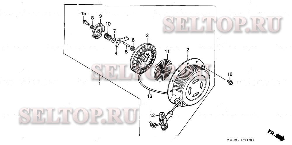 Ручной стартер для Honda GX340 STP, взрыв-схема: