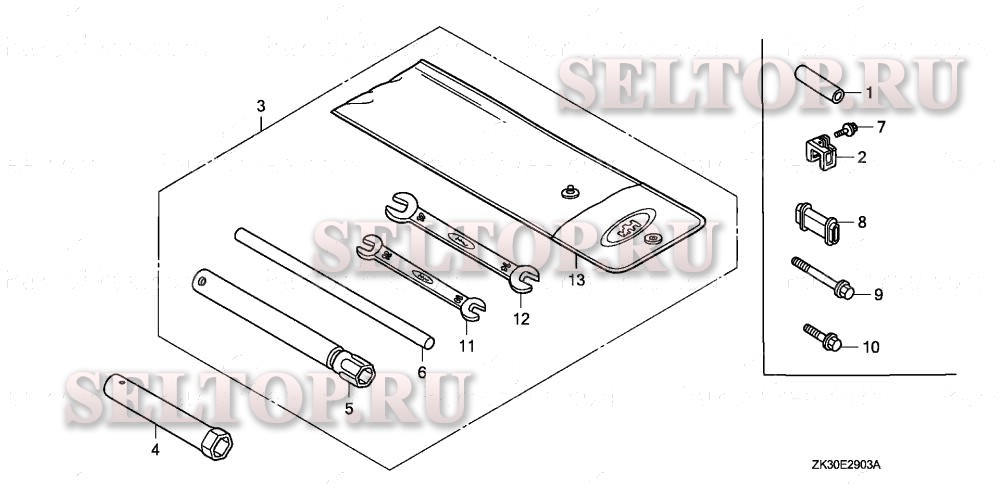 Инструмент (4) для Honda GX340K1 PKT2/A, взрыв-схема: