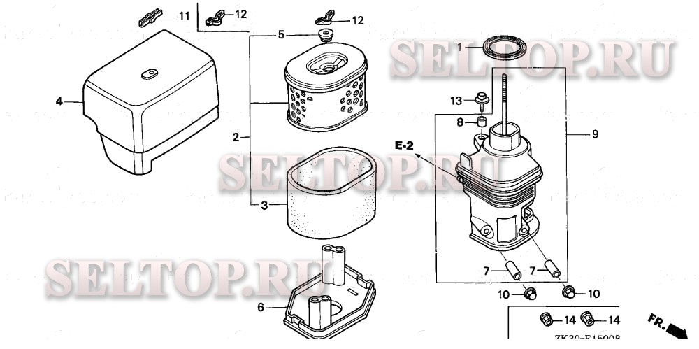 Воздушный фильтр (1) для Honda GX340K1 QAP, взрыв-схема: