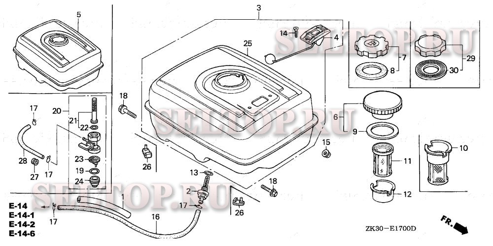 Топливный бак (1) для Honda GX340K1 VC2/A, взрыв-схема: