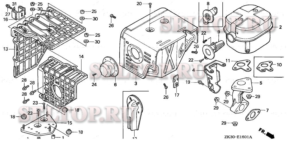 Глушитель (2) для Honda GX340K1 VWE2/A, взрыв-схема: