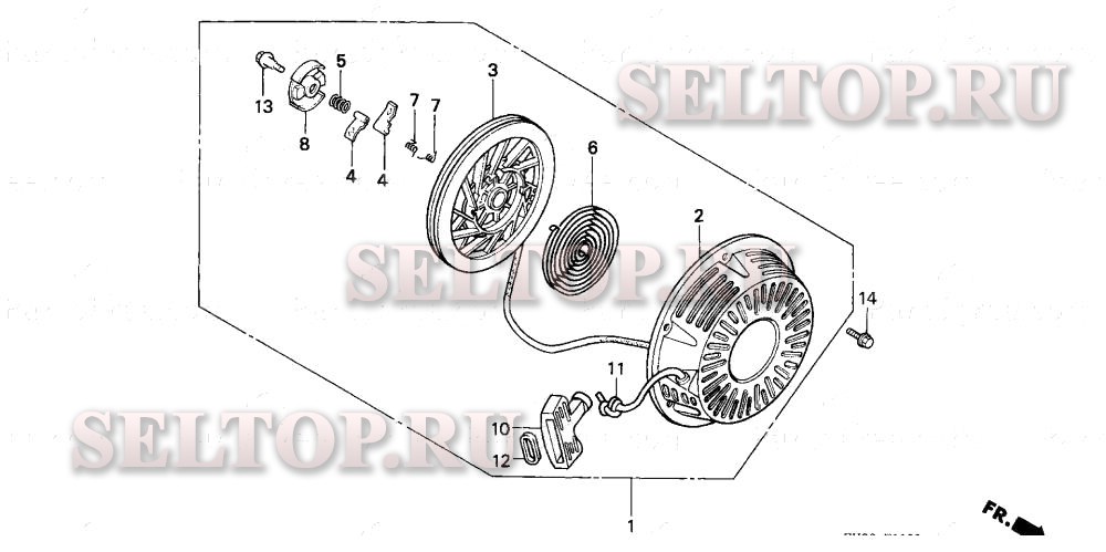 Ручной стартер для Honda GX340K1 VXA, взрыв-схема: