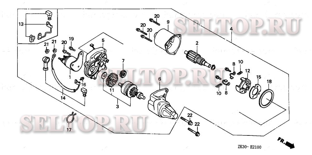 Стартер для Honda GX340K1 VXE2/A, взрыв-схема: