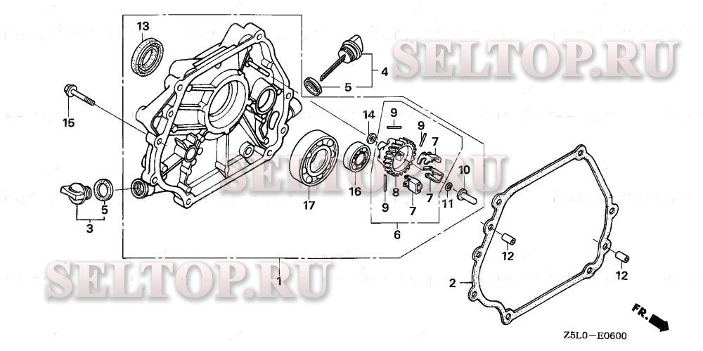 Крышка картера (1) для Honda GX340R1 EN6, взрыв-схема: