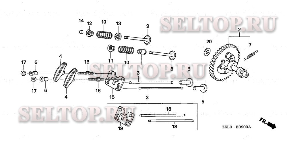 Распредвал для Honda GX340R1 VDE2, взрыв-схема: