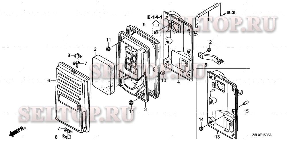 Воздушный фильтр (4) для Honda GX340R1 VWC, взрыв-схема: