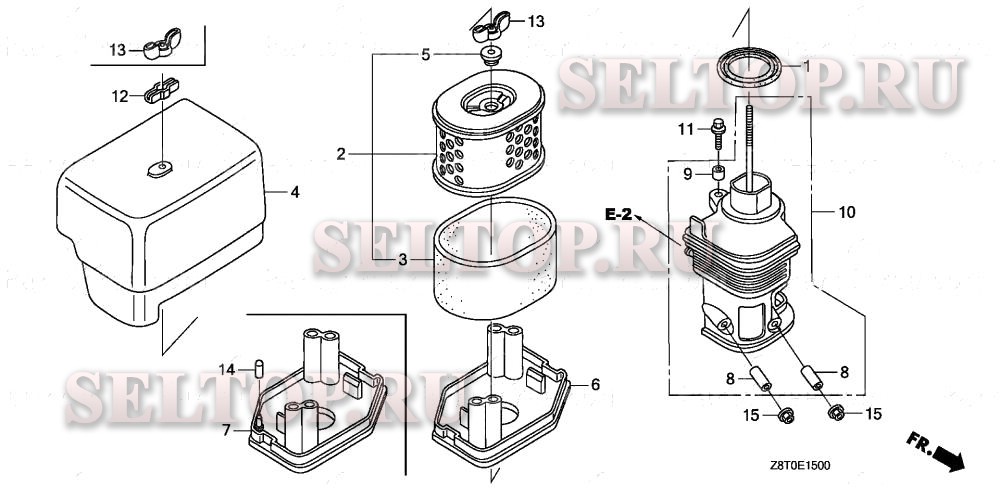 Воздушный фильтр (1) для Honda GX340RT1 VWE2, взрыв-схема: