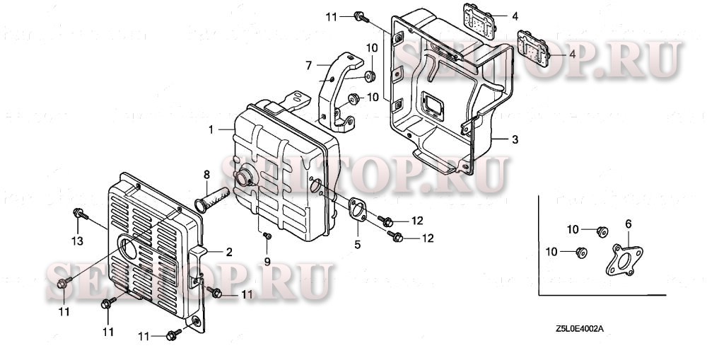 Прочие запчасти (глушитель) для Honda GX340U1 EDS6, взрыв-схема: