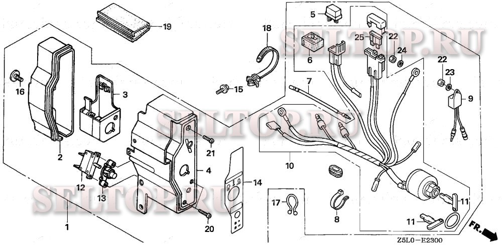 Блок управления (1) для Honda GX340U1 QXE6, взрыв-схема: