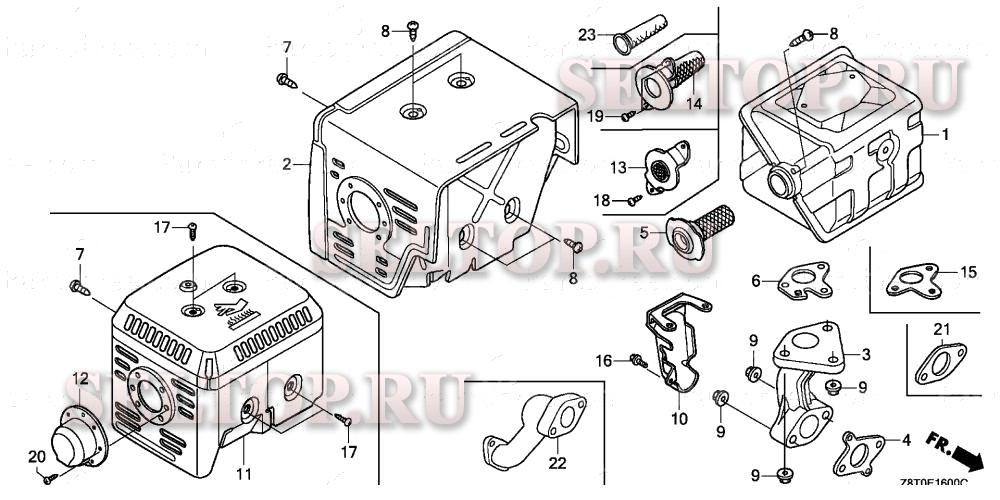 Глушитель (1) для Honda GX340UT2 LXQ4, взрыв-схема: