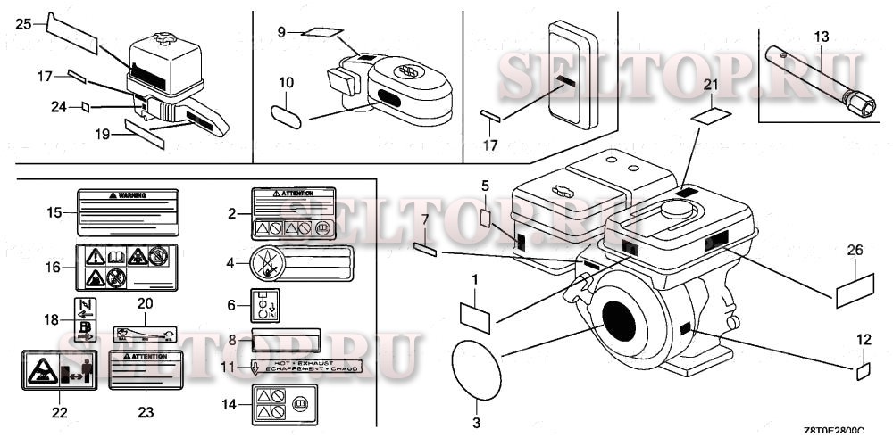 Этикетка, инструмент для Honda GX340UT2 PKT2, взрыв-схема: