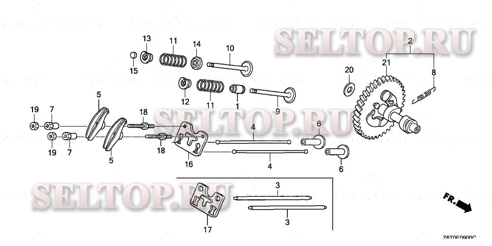 Распредвал для Honda GX340UT2 PKT2, взрыв-схема: