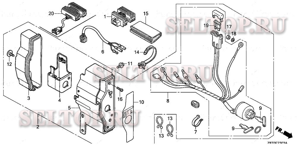 Блок управления (4) для Honda GX340UT2 QMT2, взрыв-схема: