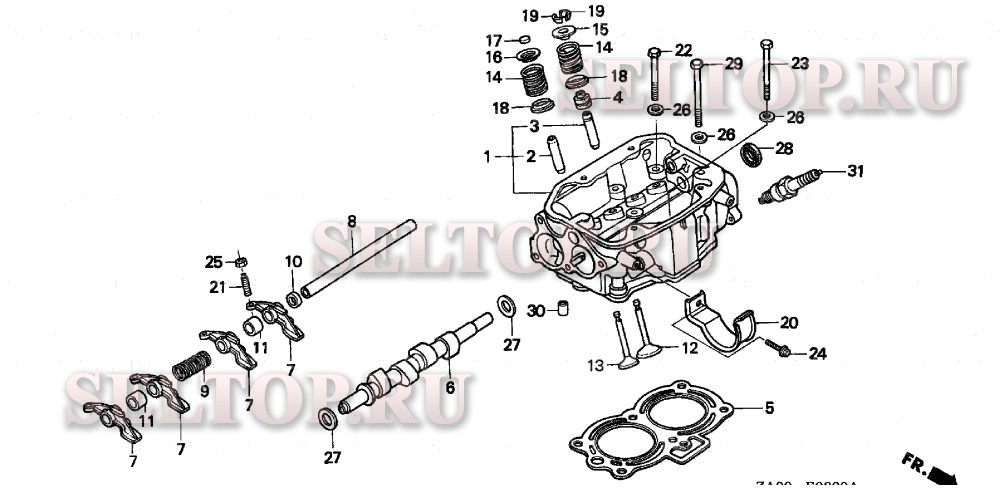 Головка цилиндра для Honda GX360K1 DD2, взрыв-схема: