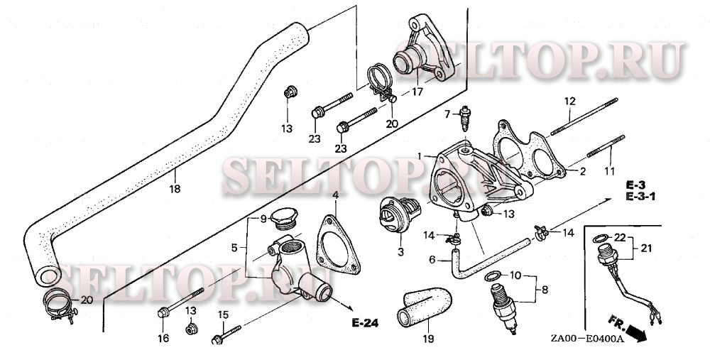 Термостат для Honda GX360K1 DD/A, взрыв-схема: