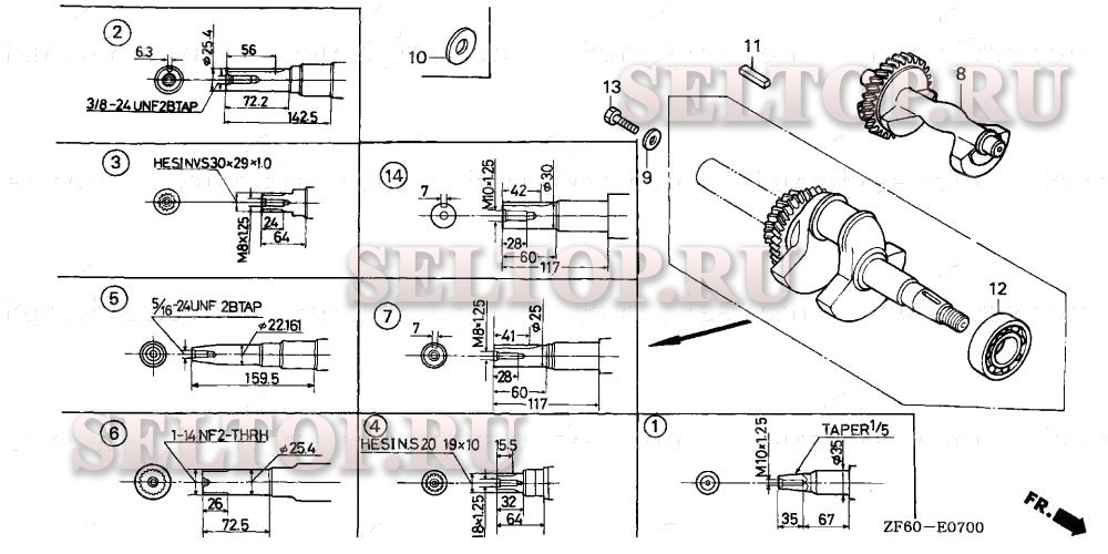 Коленвал для Honda GX390K1 ED6, взрыв-схема: