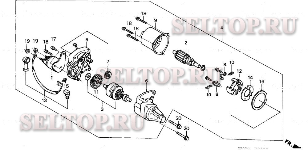 Стартер (1) для Honda GX390K1 EDS2/A, взрыв-схема: