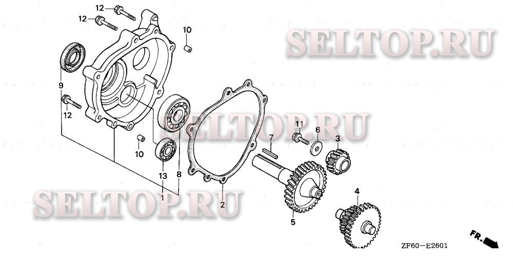 Редуктор (1/6) для Honda GX390K1 HJA2, взрыв-схема: