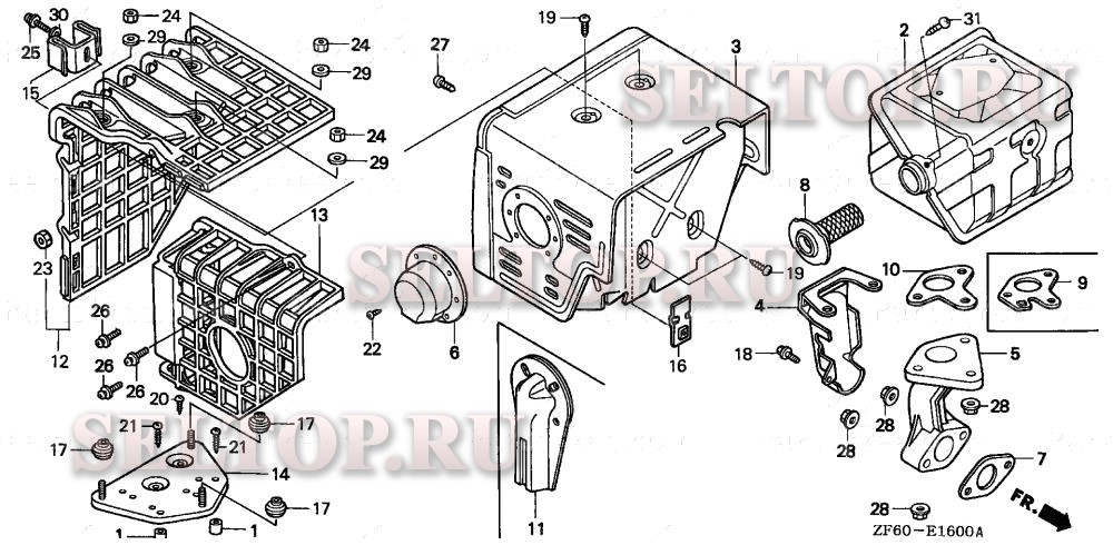 Глушитель (1) для Honda GX390K1 QA, взрыв-схема: