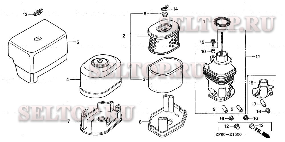 Воздушный фильтр (1) для Honda GX390K1 QKB2, взрыв-схема: