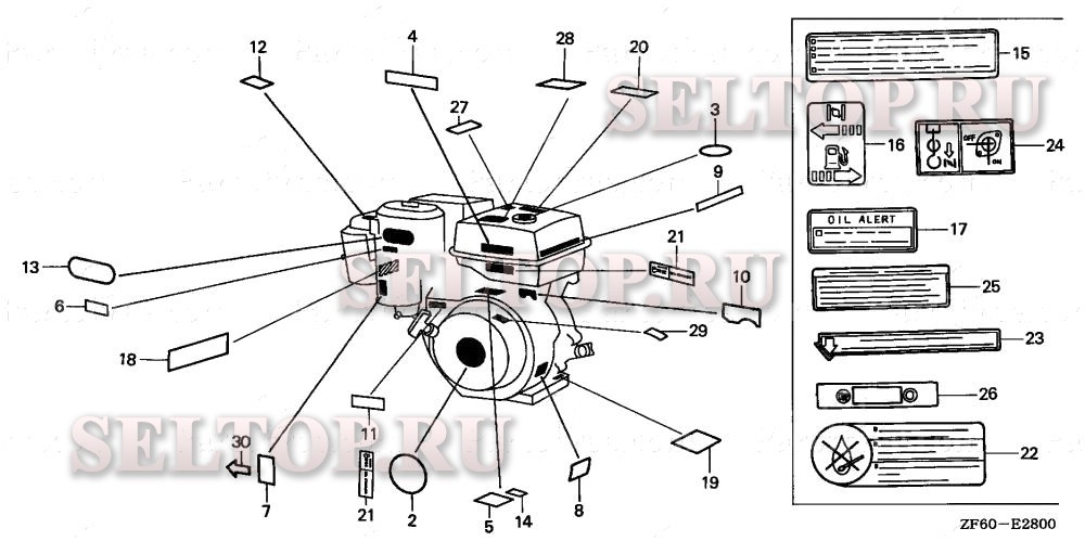 Этикетка (1) для Honda GX390K1 QND, взрыв-схема: