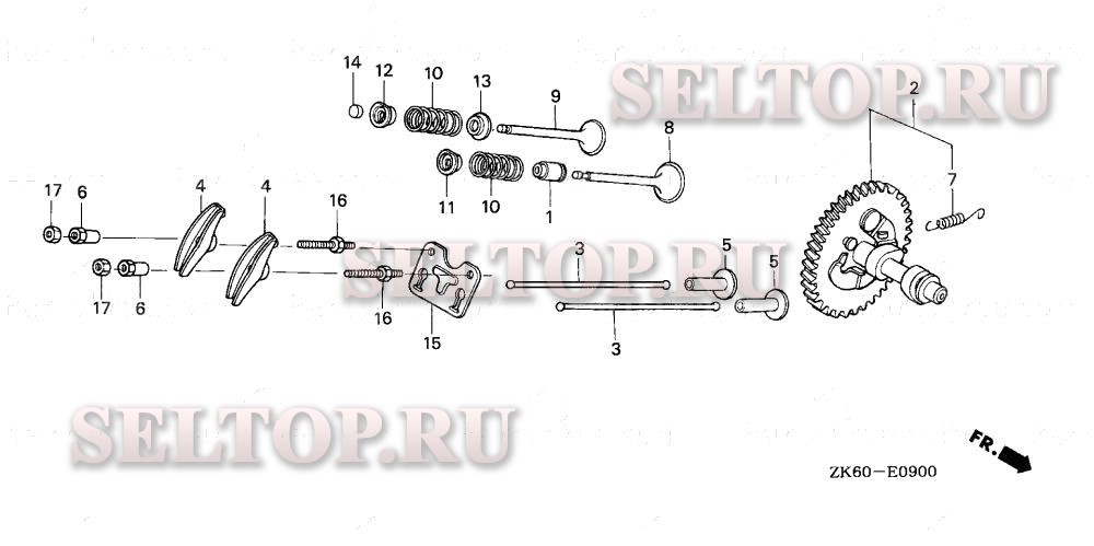 Распредвал для Honda GX390K1 QTR2, взрыв-схема: