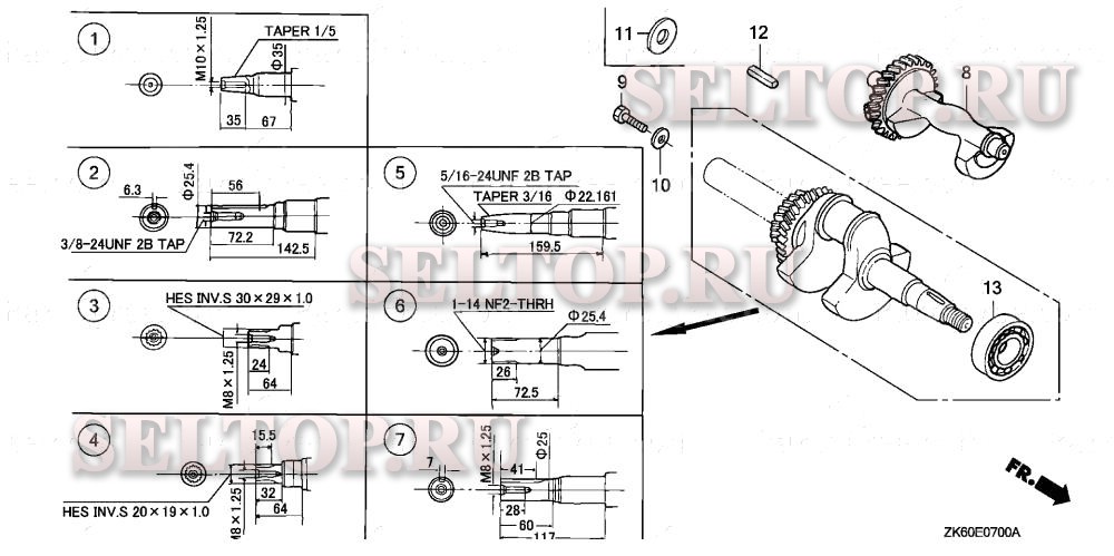 Коленвал для Honda GX390K1 VM2/A, взрыв-схема: