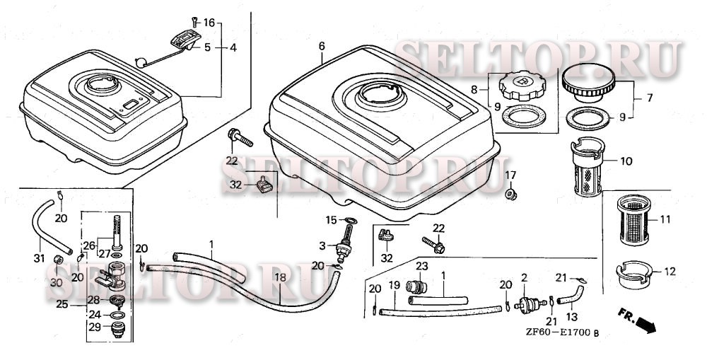 Топливный бак (1) для Honda GX390K1 VME2, взрыв-схема: