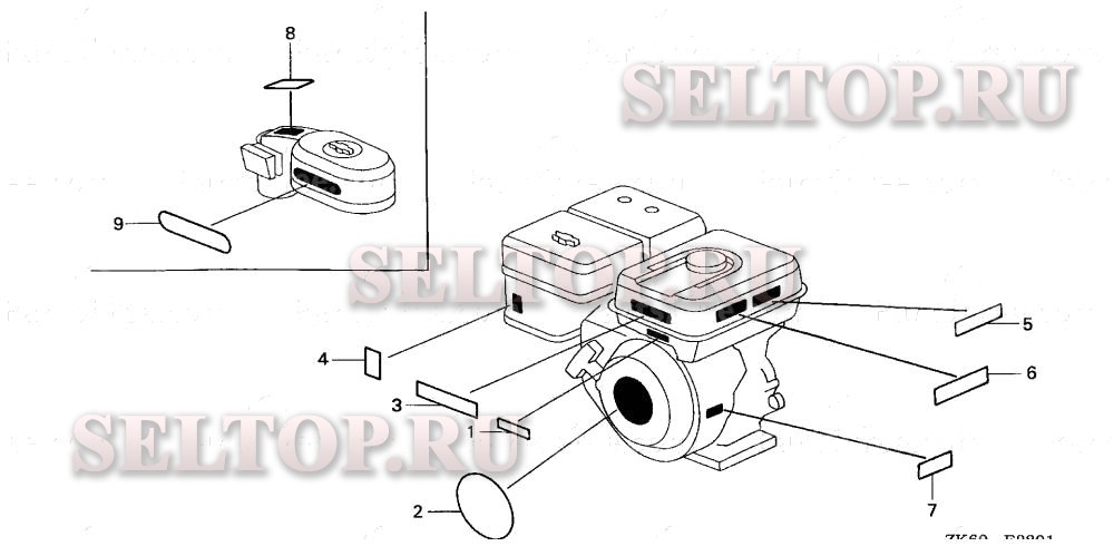 Этикетка (2) для Honda GX390K1 VXE/A, взрыв-схема: