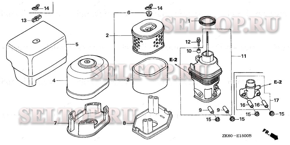 Воздушный фильтр (1) для Honda GX390K1 VXP7, взрыв-схема: