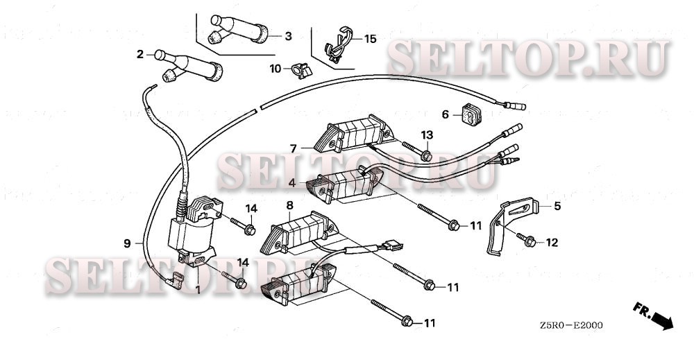 Катушка зажигания (1) для Honda GX390R1 VWE, взрыв-схема: