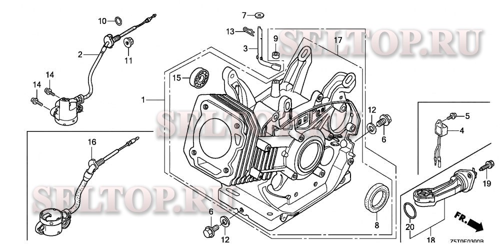 Блок цилиндров для Honda GX390RT2 QNGN, взрыв-схема: