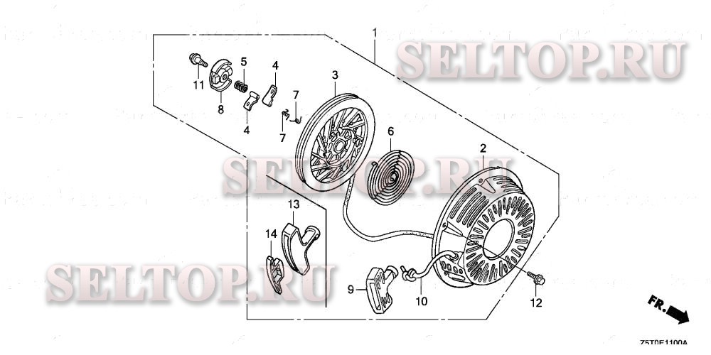 Ручной стартер (1) для Honda GX390RT2 VKX4